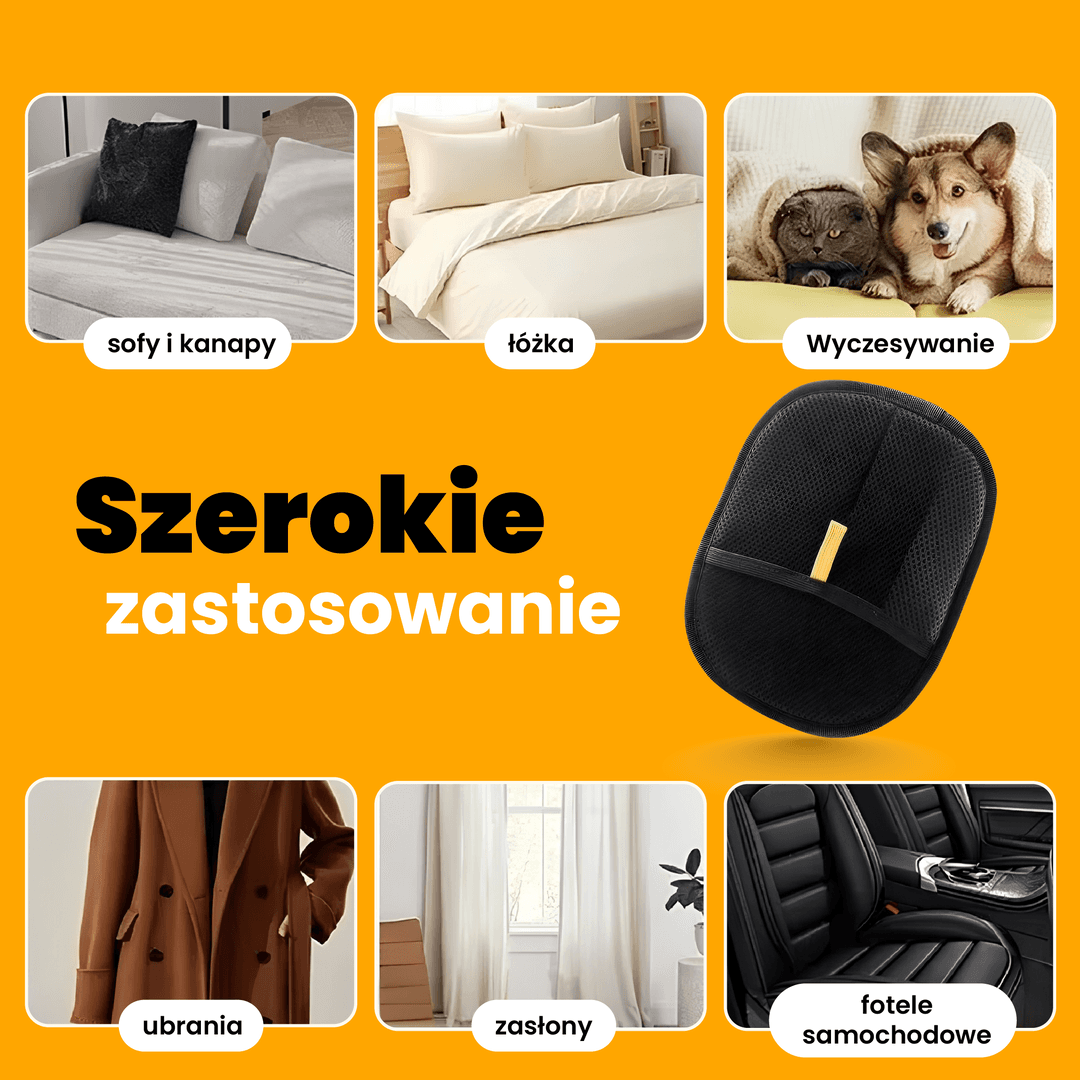 Rękawica sprawdza się na większości materiałów: ubraniach, kanapach, dywanach, zasłonach czy tapicerce samochodowej. To jedno rozwiązanie do całego domu i nie tylko.